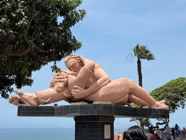 I wish I had taken the 4-5 day pre-cruise trek to Machu Picchu before the government starts hitting people with fines to manage overcrowding. Instead, I spent a whole day exploring the beautiful city of Miraflores, which is a big, clean city by the coast. I started my stroll from the Inka Shopping Plaza, a touristy open-air mall, and made my way to Miraflores Central Park where I admired the cliffs that overlook the Pacific Ocean. Below surfers were chasing the perfect wave, while hang gliders floated above. I paused for a bit by the Paddington Bear statue, which represents the friendship between Peru and the UK. In the story, the beloved bear hails from Peru before making his way to London. A few steps later, I came upon Parque d’Amour, featuring this giant statue of a couple sharing a sweet embrace.